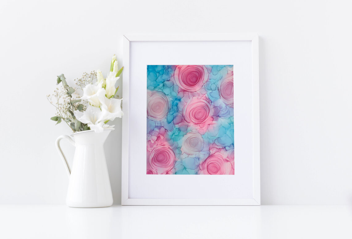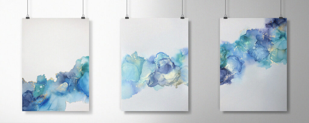 Alcohol inks are brightly coloured dye-based paints that give a vibrant, free flowing texture resulting in one of a kind pieces every time.
