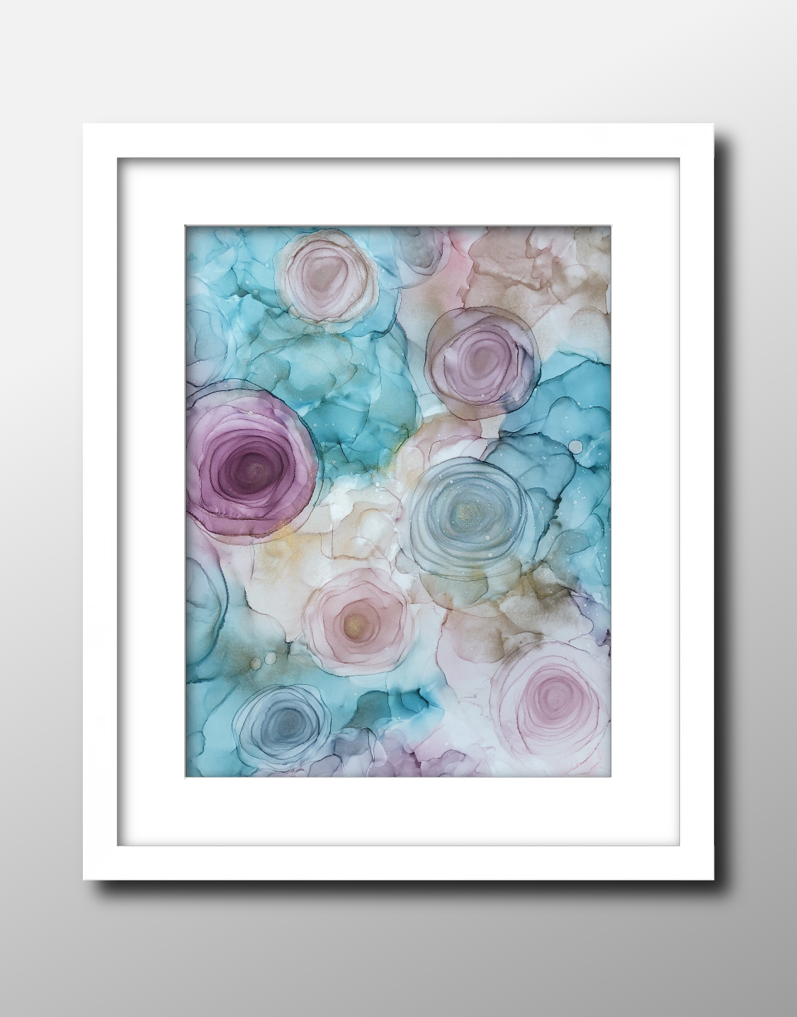 Blue Rosalie Alcohol Ink painting on Nara paper with a Gold shimmer. Sealed for UV protection.Size 280mm x 355mm (11″x14″).